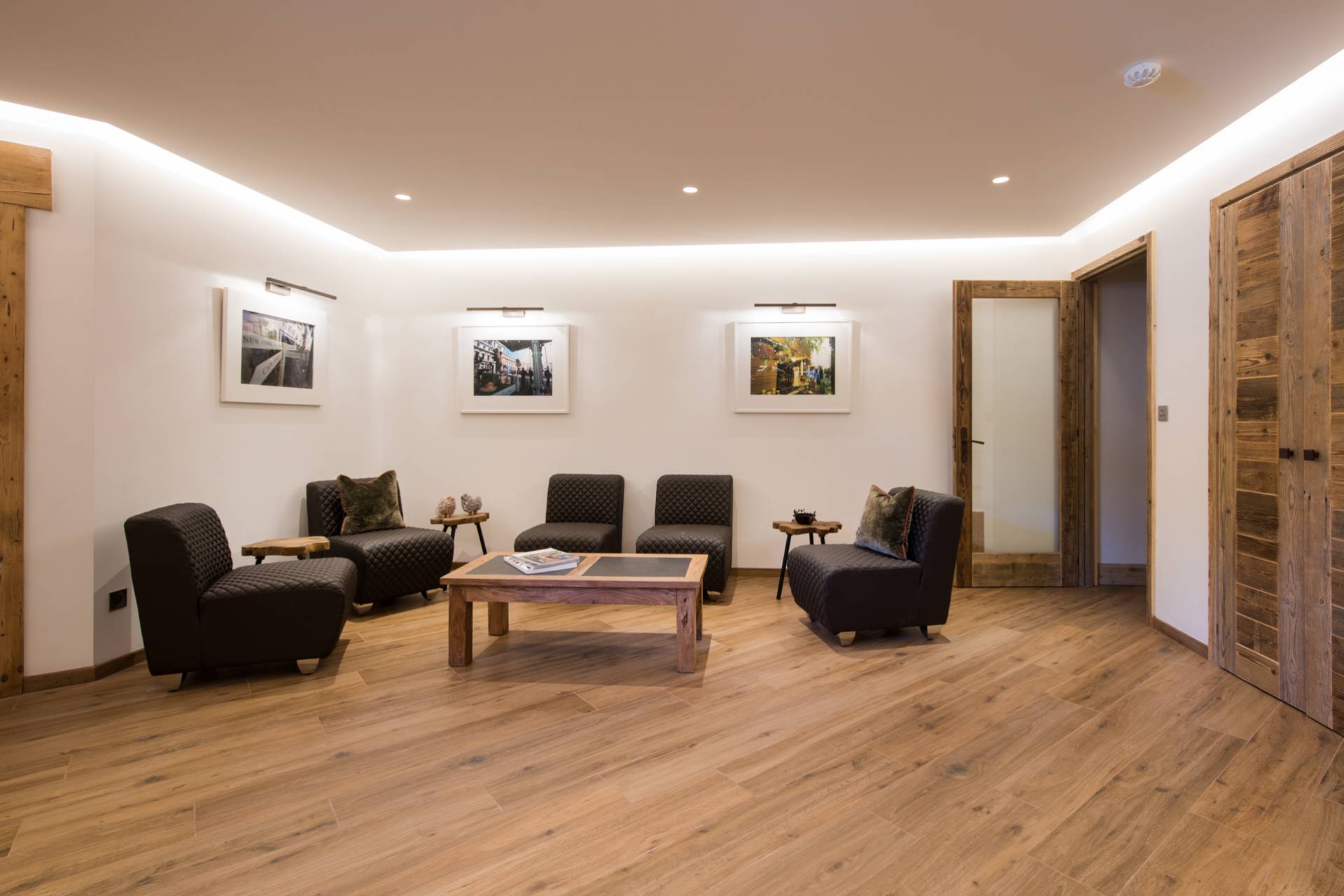 A luxurious and elegant cinema is also available for those who prefer to relax in front of a good film. Here you can find a large corner sofa and very comfortable leather armchairs. As for the children, they have not been forgotten. A playroom with television and climbing walls will keep them occupied during your moments of rest.